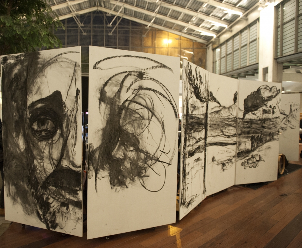 Au cours d’une performance d’une durée de 3 heures, ils ont développé une fiction symbolique sur les conditions des réfugiés en France et en Europe. Profitant de ce cadre insolite qui brasse une masse extrêmement large de population, ils ont utilisé l’immense caisse de résonnance qu’est la gare du nord comme un espace de projection mentale. Leurs personnages respectifs ont occupés chacun un territoire qu’ils ne pouvaient quitter qu’à travers leurs expressions, scintillantes comme des rives qui, vues de l’autre côté de la mer, ont toujours l’air plus souriantes…