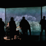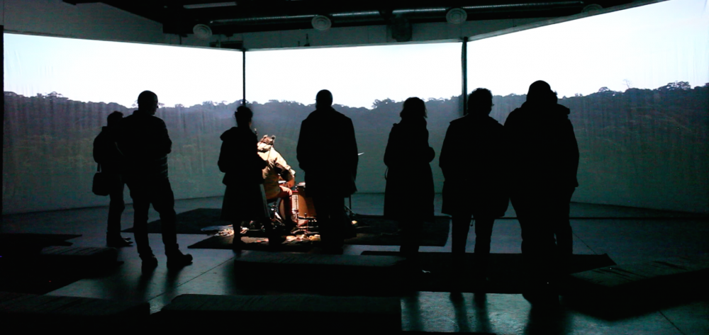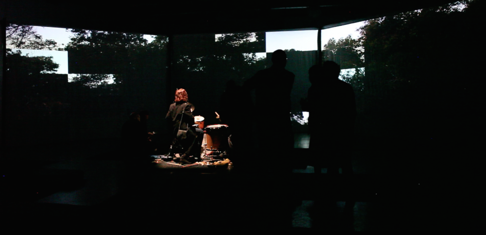 Playing during performances is analysed by an application generating sounds and images, turning the data generated by the drums into “resonances,” traces which shape the narrative of images several days afterwards. In this way, the interactions create several simultaneous time frames taking place at different levels.