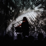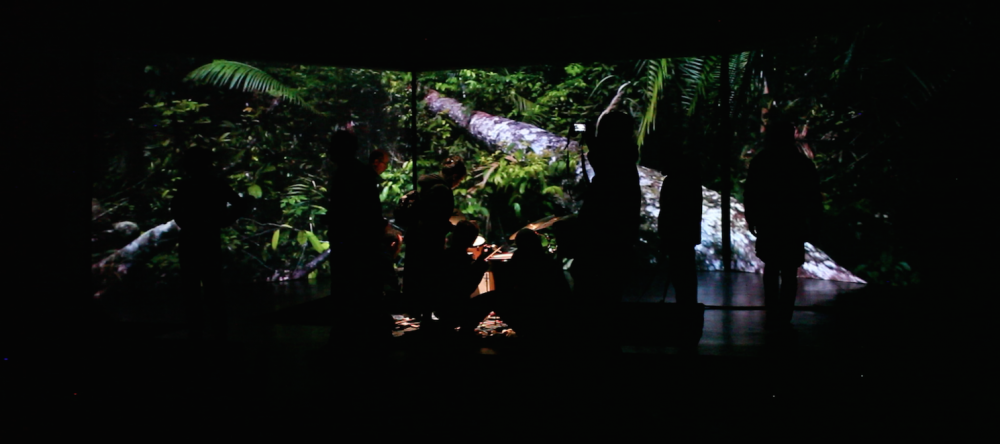 Les yeux du grand manteau de nuit est une installation immersive visuelle et musicale, une plongée en suspension au dessus et dans la canopée.