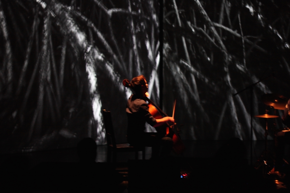The drum kit is also present during performances times by Uriel Barthélémi, and some other invited musicians, such as the drummers Yann Joussein and Lucie Antunes, or the cellist Gaspar Claus and singer Maude Trutet. Theses performances come to initiate and chaptering the visual and sonic narration.