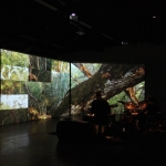 The Eyes of the Great Mantle of Night is an immersive audio/video installation; a dive into the canopy, as close as possible to the trees amongst the branches, shot by a drone in different places and different seasons.